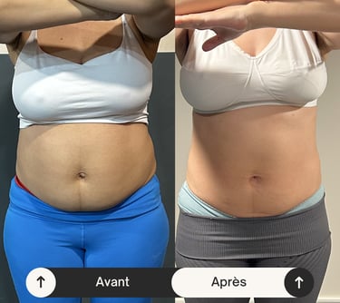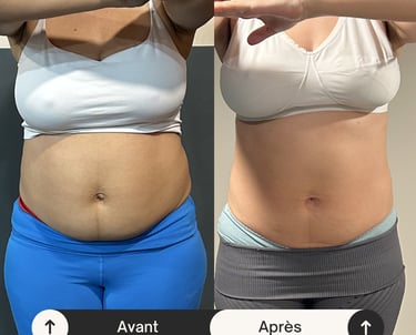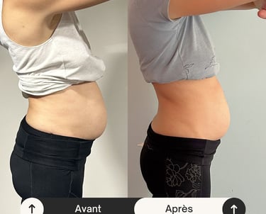 Résultat : réduction de 10 cm du tour de taille, amélioration du tonus musculaire et diminution de la diastase.
