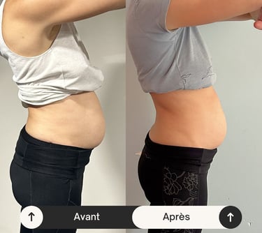 Résultat : diminution des douleurs dorsales, réduction de 5 cm de tour de taille, amélioration de la tonicité abdominale et de la qualité de la peau.